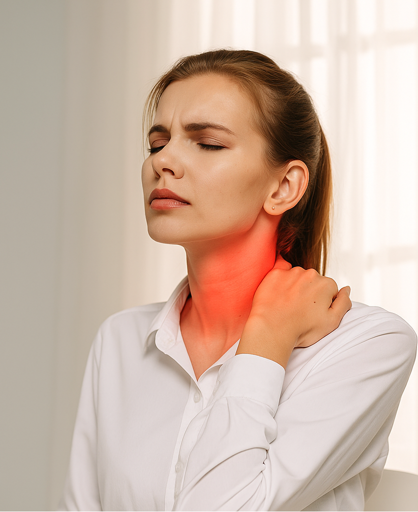 • Hours of desk work create hidden neck strain.